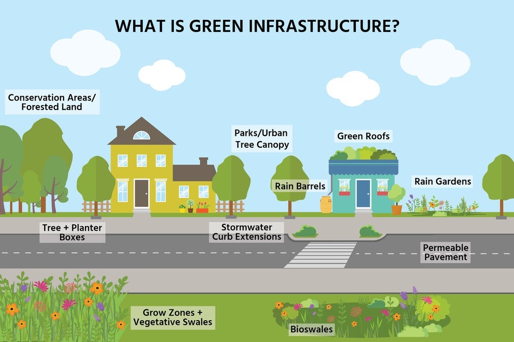 For example, adding green infrastructure such as urban parks, wetlands, street trees, or green roofs isn’t just about hitting environmental targets, it creates a natural buffer against climate impacts.